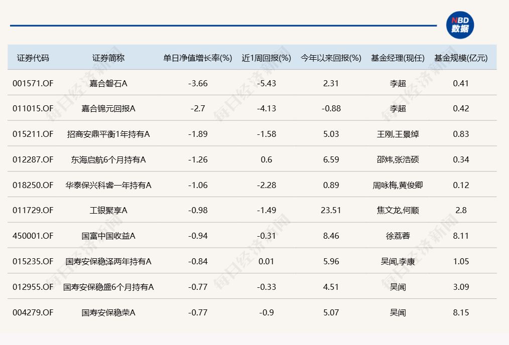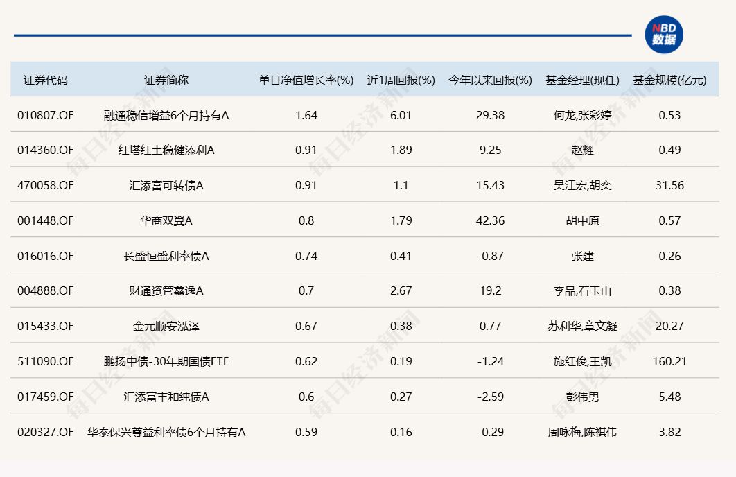 3.单日债基涨跌幅榜